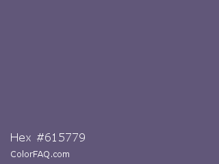 Hex #615779 Color is a normal indigo color and the nearest color is Smoky #605b73. Hex code #615779 and RGB value is rgb(97,87,121). In RGB color space, this color is composed of 38% red, 34% green, 47% blue, In CMYK color space, this color is composed of 20% cyan, 28% magenta, 0% yellow , 53% black , In HSL color space, this color has a hue angle of 258° , 16% saturation and 41% lightness.