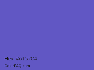 Hex #6157c4 Color is a normal indigo color and the nearest color is Slate Blue #6a5acd. Hex code #6157c4 and RGB value is rgb(97,87,196). In RGB color space, this color is composed of 38% red, 34% green, 77% blue, In CMYK color space, this color is composed of 51% cyan, 56% magenta, 0% yellow , 23% black , In HSL color space, this color has a hue angle of 246° , 48% saturation and 55% lightness.