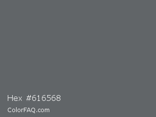 Hex #616568 Color is a normal blue color and the nearest color is Storm Dust #646463. Hex code #616568 and RGB value is rgb(97,101,104). In RGB color space, this color is composed of 38% red, 40% green, 41% blue, In CMYK color space, this color is composed of 7% cyan, 3% magenta, 0% yellow , 59% black , In HSL color space, this color has a hue angle of 206° , 3% saturation and 39% lightness.