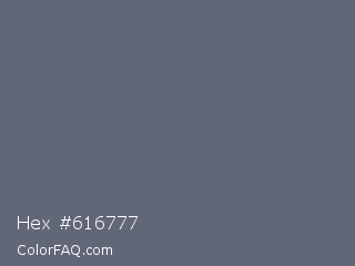 Hex #616777 Color is a normal blue color and the nearest color is Shuttle Gray #5f6672. Hex code #616777 and RGB value is rgb(97,103,119). In RGB color space, this color is composed of 38% red, 40% green, 47% blue, In CMYK color space, this color is composed of 18% cyan, 13% magenta, 0% yellow , 53% black , In HSL color space, this color has a hue angle of 224° , 10% saturation and 42% lightness.