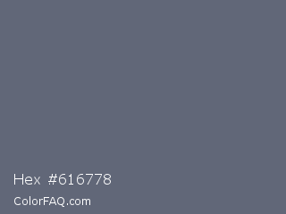 Hex #616778 Color is a normal blue color and the nearest color is Shuttle Gray #5f6672. Hex code #616778 and RGB value is rgb(97,103,120). In RGB color space, this color is composed of 38% red, 40% green, 47% blue, In CMYK color space, this color is composed of 19% cyan, 14% magenta, 0% yellow , 53% black , In HSL color space, this color has a hue angle of 224° , 11% saturation and 43% lightness.