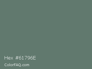 Hex #61796e Color is a normal green color and the nearest color is Corduroy #606e68. Hex code #61796e and RGB value is rgb(97,121,110). In RGB color space, this color is composed of 38% red, 47% green, 43% blue, In CMYK color space, this color is composed of 20% cyan, 0% magenta, 9% yellow , 53% black , In HSL color space, this color has a hue angle of 153° , 11% saturation and 43% lightness.