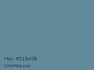 Hex #618a9b Color is a normal blue color and the nearest color is Hoki #65869f. Hex code #618a9b and RGB value is rgb(97,138,155). In RGB color space, this color is composed of 38% red, 54% green, 61% blue, In CMYK color space, this color is composed of 37% cyan, 11% magenta, 0% yellow , 39% black , In HSL color space, this color has a hue angle of 198° , 23% saturation and 49% lightness.