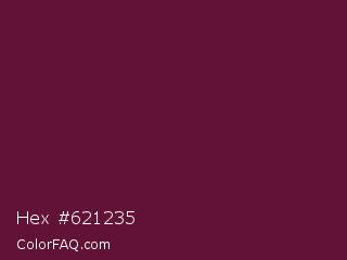Hex #621235 Color is a dark rose color and the nearest color is Wine Berry #591d35. Hex code #621235 and RGB value is rgb(98,18,53). In RGB color space, this color is composed of 38% red, 7% green, 21% blue, In CMYK color space, this color is composed of 0% cyan, 82% magenta, 46% yellow , 62% black , In HSL color space, this color has a hue angle of 334° , 69% saturation and 23% lightness.