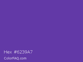 Hex #6239a7 Color is a normal violet color and the nearest color is Royal Purple #6b3fa0. Hex code #6239a7 and RGB value is rgb(98,57,167). In RGB color space, this color is composed of 38% red, 22% green, 65% blue, In CMYK color space, this color is composed of 41% cyan, 66% magenta, 0% yellow , 35% black , In HSL color space, this color has a hue angle of 262° , 49% saturation and 44% lightness.