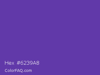 Hex #6239a8 Color is a normal violet color and the nearest color is Royal Purple #6b3fa0. Hex code #6239a8 and RGB value is rgb(98,57,168). In RGB color space, this color is composed of 38% red, 22% green, 66% blue, In CMYK color space, this color is composed of 42% cyan, 66% magenta, 0% yellow , 34% black , In HSL color space, this color has a hue angle of 262° , 49% saturation and 44% lightness.