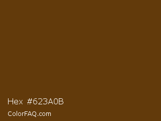 Hex #623a0b Color is a very dark orange color and the nearest color is Pineapple #563c0d. Hex code #623a0b and RGB value is rgb(98,58,11). In RGB color space, this color is composed of 38% red, 23% green, 4% blue, In CMYK color space, this color is composed of 0% cyan, 41% magenta, 89% yellow , 62% black , In HSL color space, this color has a hue angle of 32° , 80% saturation and 21% lightness.