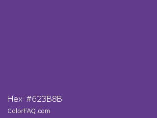 Hex #623b8b Color is a normal violet color and the nearest color is Blue Magenta Violet #553592. Hex code #623b8b and RGB value is rgb(98,59,139). In RGB color space, this color is composed of 38% red, 23% green, 55% blue, In CMYK color space, this color is composed of 29% cyan, 58% magenta, 0% yellow , 45% black , In HSL color space, this color has a hue angle of 269° , 40% saturation and 39% lightness.