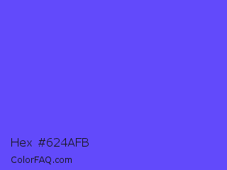 Hex #624afb Color is a light indigo color and the nearest color is Very Light Blue #6666ff. Hex code #624afb and RGB value is rgb(98,74,251). In RGB color space, this color is composed of 38% red, 29% green, 98% blue, In CMYK color space, this color is composed of 61% cyan, 71% magenta, 0% yellow , 2% black , In HSL color space, this color has a hue angle of 248° , 96% saturation and 64% lightness.
