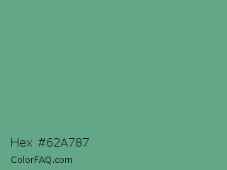 Hex #62a787 Color is a normal green color and the nearest color is Polished Pine #5da493. Hex code #62a787 and RGB value is rgb(98,167,135). In RGB color space, this color is composed of 38% red, 65% green, 53% blue, In CMYK color space, this color is composed of 41% cyan, 0% magenta, 19% yellow , 35% black , In HSL color space, this color has a hue angle of 152° , 28% saturation and 52% lightness.