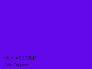 Hex #6308eb Color is a normal violet color and the nearest color is Electric Indigo #6f00ff. Hex code #6308eb and RGB value is rgb(99,8,235). In RGB color space, this color is composed of 39% red, 3% green, 92% blue, In CMYK color space, this color is composed of 58% cyan, 97% magenta, 0% yellow , 8% black , In HSL color space, this color has a hue angle of 264° , 93% saturation and 48% lightness.