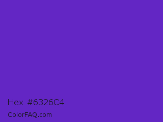 Hex #6326c4 Color is a normal violet color and the nearest color is Purple Heart Crayola #652dc1. Hex code #6326c4 and RGB value is rgb(99,38,196). In RGB color space, this color is composed of 39% red, 15% green, 77% blue, In CMYK color space, this color is composed of 49% cyan, 81% magenta, 0% yellow , 23% black , In HSL color space, this color has a hue angle of 263° , 68% saturation and 46% lightness.