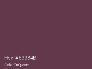 Hex #63384b Color is a dark rose color and the nearest color is Wine Dregs #673147. Hex code #63384b and RGB value is rgb(99,56,75). In RGB color space, this color is composed of 39% red, 22% green, 29% blue, In CMYK color space, this color is composed of 0% cyan, 43% magenta, 24% yellow , 61% black , In HSL color space, this color has a hue angle of 333° , 28% saturation and 30% lightness.