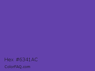 Hex #6341ac Color is a normal indigo color and the nearest color is Plump Purple #5946b2. Hex code #6341ac and RGB value is rgb(99,65,172). In RGB color space, this color is composed of 39% red, 25% green, 67% blue, In CMYK color space, this color is composed of 42% cyan, 62% magenta, 0% yellow , 33% black , In HSL color space, this color has a hue angle of 259° , 45% saturation and 46% lightness.