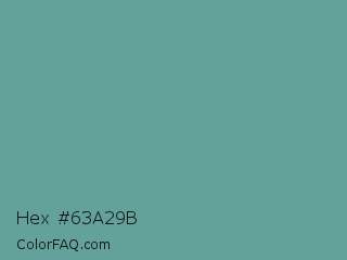 Hex #63a29b Color is a normal cyan color and the nearest color is Breaker Bay #5da19f. Hex code #63a29b and RGB value is rgb(99,162,155). In RGB color space, this color is composed of 39% red, 64% green, 61% blue, In CMYK color space, this color is composed of 39% cyan, 0% magenta, 4% yellow , 36% black , In HSL color space, this color has a hue angle of 173° , 25% saturation and 51% lightness.