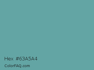 Hex #63a5a4 Color is a normal cyan color and the nearest color is Breaker Bay #5da19f. Hex code #63a5a4 and RGB value is rgb(99,165,164). In RGB color space, this color is composed of 39% red, 65% green, 64% blue, In CMYK color space, this color is composed of 40% cyan, 0% magenta, 1% yellow , 35% black , In HSL color space, this color has a hue angle of 179° , 27% saturation and 52% lightness.
