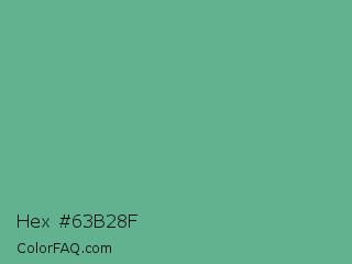 Hex #63b28f Color is a normal green color and the nearest color is Silver Tree #66b58f. Hex code #63b28f and RGB value is rgb(99,178,143). In RGB color space, this color is composed of 39% red, 70% green, 56% blue, In CMYK color space, this color is composed of 44% cyan, 0% magenta, 20% yellow , 30% black , In HSL color space, this color has a hue angle of 153° , 34% saturation and 54% lightness.