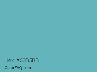 Hex #63b5bb Color is a normal cyan color and the nearest color is Fountain Blue #56b4be. Hex code #63b5bb and RGB value is rgb(99,181,187). In RGB color space, this color is composed of 39% red, 71% green, 73% blue, In CMYK color space, this color is composed of 47% cyan, 3% magenta, 0% yellow , 27% black , In HSL color space, this color has a hue angle of 184° , 39% saturation and 56% lightness.