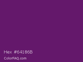 Hex #64186b Color is a dark magenta color and the nearest color is Midnight #702670. Hex code #64186b and RGB value is rgb(100,24,107). In RGB color space, this color is composed of 39% red, 9% green, 42% blue, In CMYK color space, this color is composed of 7% cyan, 78% magenta, 0% yellow , 58% black , In HSL color space, this color has a hue angle of 295° , 63% saturation and 26% lightness.