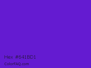 Hex #641bd1 Color is a normal violet color and the nearest color is Purple Heart Crayola #652dc1. Hex code #641bd1 and RGB value is rgb(100,27,209). In RGB color space, this color is composed of 39% red, 11% green, 82% blue, In CMYK color space, this color is composed of 52% cyan, 87% magenta, 0% yellow , 18% black , In HSL color space, this color has a hue angle of 264° , 77% saturation and 46% lightness.