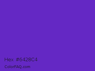 Hex #6428c4 Color is a normal violet color and the nearest color is Purple Heart Crayola #652dc1. Hex code #6428c4 and RGB value is rgb(100,40,196). In RGB color space, this color is composed of 39% red, 16% green, 77% blue, In CMYK color space, this color is composed of 49% cyan, 80% magenta, 0% yellow , 23% black , In HSL color space, this color has a hue angle of 263° , 66% saturation and 46% lightness.