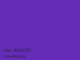 Hex #642cb7 Color is a normal violet color and the nearest color is Purple Heart Crayola #652dc1. Hex code #642cb7 and RGB value is rgb(100,44,183). In RGB color space, this color is composed of 39% red, 17% green, 72% blue, In CMYK color space, this color is composed of 45% cyan, 76% magenta, 0% yellow , 28% black , In HSL color space, this color has a hue angle of 264° , 61% saturation and 45% lightness.