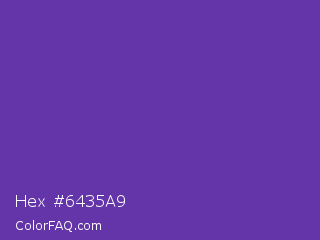 Hex #6435a9 Color is a normal violet color and the nearest color is Grape #6f2da8. Hex code #6435a9 and RGB value is rgb(100,53,169). In RGB color space, this color is composed of 39% red, 21% green, 66% blue, In CMYK color space, this color is composed of 41% cyan, 69% magenta, 0% yellow , 34% black , In HSL color space, this color has a hue angle of 264° , 52% saturation and 44% lightness.