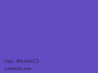 Hex #644ac3 Color is a normal indigo color and the nearest color is Iris #5a4fcf. Hex code #644ac3 and RGB value is rgb(100,74,195). In RGB color space, this color is composed of 39% red, 29% green, 76% blue, In CMYK color space, this color is composed of 49% cyan, 62% magenta, 0% yellow , 24% black , In HSL color space, this color has a hue angle of 253° , 50% saturation and 53% lightness.
