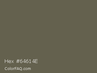 Hex #64614e Color is a normal yellow color and the nearest color is Soya Bean #6a6051. Hex code #64614e and RGB value is rgb(100,97,78). In RGB color space, this color is composed of 39% red, 38% green, 31% blue, In CMYK color space, this color is composed of 0% cyan, 3% magenta, 22% yellow , 61% black , In HSL color space, this color has a hue angle of 52° , 12% saturation and 35% lightness.