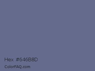 Hex #646b8d Color is a normal blue color and the nearest color is Dark Blue Gray #666699. Hex code #646b8d and RGB value is rgb(100,107,141). In RGB color space, this color is composed of 39% red, 42% green, 55% blue, In CMYK color space, this color is composed of 29% cyan, 24% magenta, 0% yellow , 45% black , In HSL color space, this color has a hue angle of 230° , 17% saturation and 47% lightness.