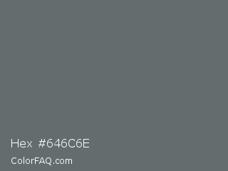 Hex #646c6e Color is a normal cyan color and the nearest color is Nevada #646e75. Hex code #646c6e and RGB value is rgb(100,108,110). In RGB color space, this color is composed of 39% red, 42% green, 43% blue, In CMYK color space, this color is composed of 9% cyan, 2% magenta, 0% yellow , 57% black , In HSL color space, this color has a hue angle of 192° , 5% saturation and 41% lightness.