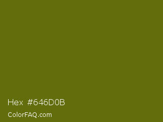 Hex #646d0b Color is a dark yellow color and the nearest color is Olivetone #716e10. Hex code #646d0b and RGB value is rgb(100,109,11). In RGB color space, this color is composed of 39% red, 43% green, 4% blue, In CMYK color space, this color is composed of 8% cyan, 0% magenta, 90% yellow , 57% black , In HSL color space, this color has a hue angle of 66° , 82% saturation and 24% lightness.