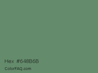 Hex #648b6b Color is a normal green color and the nearest color is Russian Green #679267. Hex code #648b6b and RGB value is rgb(100,139,107). In RGB color space, this color is composed of 39% red, 55% green, 42% blue, In CMYK color space, this color is composed of 28% cyan, 0% magenta, 23% yellow , 45% black , In HSL color space, this color has a hue angle of 131° , 16% saturation and 47% lightness.