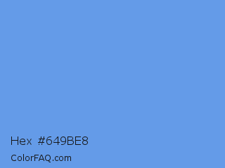Hex #649be8 Color is a light blue color and the nearest color is Cornflower Blue #6495ed. Hex code #649be8 and RGB value is rgb(100,155,232). In RGB color space, this color is composed of 39% red, 61% green, 91% blue, In CMYK color space, this color is composed of 57% cyan, 33% magenta, 0% yellow , 9% black , In HSL color space, this color has a hue angle of 215° , 74% saturation and 65% lightness.