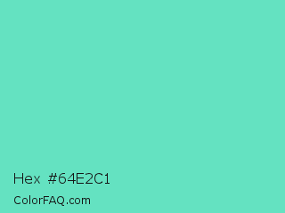 Hex #64e2c1 Color is a light cyan color and the nearest color is Downy #6fd0c5. Hex code #64e2c1 and RGB value is rgb(100,226,193). In RGB color space, this color is composed of 39% red, 89% green, 76% blue, In CMYK color space, this color is composed of 56% cyan, 0% magenta, 15% yellow , 11% black , In HSL color space, this color has a hue angle of 164° , 68% saturation and 64% lightness.
