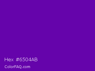Hex #6504ab Color is a normal purple color and the nearest color is Purple #660099. Hex code #6504ab and RGB value is rgb(101,4,171). In RGB color space, this color is composed of 40% red, 2% green, 67% blue, In CMYK color space, this color is composed of 41% cyan, 98% magenta, 0% yellow , 33% black , In HSL color space, this color has a hue angle of 275° , 95% saturation and 34% lightness.
