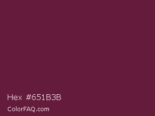 Hex #651b3b Color is a dark rose color and the nearest color is Wine Berry #591d35. Hex code #651b3b and RGB value is rgb(101,27,59). In RGB color space, this color is composed of 40% red, 11% green, 23% blue, In CMYK color space, this color is composed of 0% cyan, 73% magenta, 42% yellow , 60% black , In HSL color space, this color has a hue angle of 334° , 58% saturation and 25% lightness.