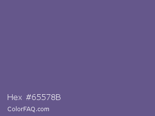 Hex #65578b Color is a normal indigo color and the nearest color is Butterfly Bush #624e9a. Hex code #65578b and RGB value is rgb(101,87,139). In RGB color space, this color is composed of 40% red, 34% green, 55% blue, In CMYK color space, this color is composed of 27% cyan, 37% magenta, 0% yellow , 45% black , In HSL color space, this color has a hue angle of 256° , 23% saturation and 44% lightness.