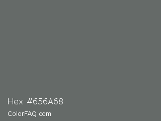 Hex #656a68 Color is a normal green color and the nearest color is Granite Gray #676767. Hex code #656a68 and RGB value is rgb(101,106,104). In RGB color space, this color is composed of 40% red, 42% green, 41% blue, In CMYK color space, this color is composed of 5% cyan, 0% magenta, 2% yellow , 58% black , In HSL color space, this color has a hue angle of 156° , 2% saturation and 41% lightness.
