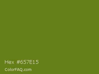 Hex #657e15 Color is a dark lime color and the nearest color is Fern Frond #657220. Hex code #657e15 and RGB value is rgb(101,126,21). In RGB color space, this color is composed of 40% red, 49% green, 8% blue, In CMYK color space, this color is composed of 20% cyan, 0% magenta, 83% yellow , 51% black , In HSL color space, this color has a hue angle of 74° , 71% saturation and 29% lightness.