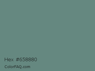 Hex #658880 Color is a normal cyan color and the nearest color is Viridian Green #678975. Hex code #658880 and RGB value is rgb(101,136,128). In RGB color space, this color is composed of 40% red, 53% green, 50% blue, In CMYK color space, this color is composed of 26% cyan, 0% magenta, 6% yellow , 47% black , In HSL color space, this color has a hue angle of 166° , 15% saturation and 46% lightness.