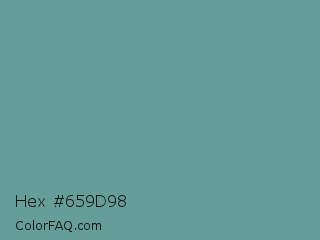 Hex #659d98 Color is a normal cyan color and the nearest color is Desaturated Cyan #669999. Hex code #659d98 and RGB value is rgb(101,157,152). In RGB color space, this color is composed of 40% red, 62% green, 60% blue, In CMYK color space, this color is composed of 36% cyan, 0% magenta, 3% yellow , 38% black , In HSL color space, this color has a hue angle of 175° , 22% saturation and 51% lightness.