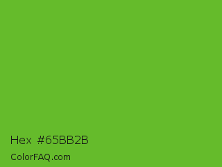 Hex #65bb2b Color is a normal green color and the nearest color is Green RYB #66b032. Hex code #65bb2b and RGB value is rgb(101,187,43). In RGB color space, this color is composed of 40% red, 73% green, 17% blue, In CMYK color space, this color is composed of 46% cyan, 0% magenta, 77% yellow , 27% black , In HSL color space, this color has a hue angle of 96° , 63% saturation and 45% lightness.