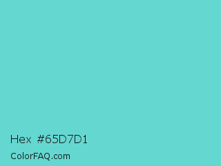 Hex #65d7d1 Color is a light cyan color and the nearest color is Viking #64ccdb. Hex code #65d7d1 and RGB value is rgb(101,215,209). In RGB color space, this color is composed of 40% red, 84% green, 82% blue, In CMYK color space, this color is composed of 53% cyan, 0% magenta, 3% yellow , 16% black , In HSL color space, this color has a hue angle of 177° , 59% saturation and 62% lightness.
