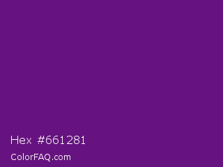 Hex #661281 Color is a dark purple color and the nearest color is Seance #731e8f. Hex code #661281 and RGB value is rgb(102,18,129). In RGB color space, this color is composed of 40% red, 7% green, 51% blue, In CMYK color space, this color is composed of 21% cyan, 86% magenta, 0% yellow , 49% black , In HSL color space, this color has a hue angle of 285° , 76% saturation and 29% lightness.