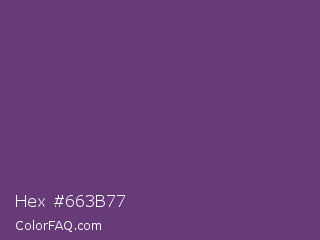 Hex #663b77 Color is a normal purple color and the nearest color is Cyber Grape #58427c. Hex code #663b77 and RGB value is rgb(102,59,119). In RGB color space, this color is composed of 40% red, 23% green, 47% blue, In CMYK color space, this color is composed of 14% cyan, 50% magenta, 0% yellow , 53% black , In HSL color space, this color has a hue angle of 283° , 34% saturation and 35% lightness.