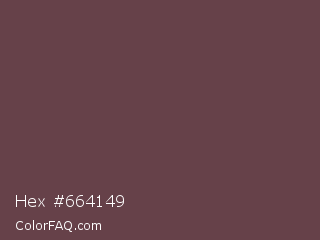 Hex #664149 Color is a normal red color and the nearest color is Deep Tuscan Red #66424d. Hex code #664149 and RGB value is rgb(102,65,73). In RGB color space, this color is composed of 40% red, 25% green, 29% blue, In CMYK color space, this color is composed of 0% cyan, 36% magenta, 28% yellow , 60% black , In HSL color space, this color has a hue angle of 347° , 22% saturation and 33% lightness.
