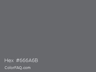 Hex #666a6b Color is a normal cyan color and the nearest color is Dim Gray #696969. Hex code #666a6b and RGB value is rgb(102,106,107). In RGB color space, this color is composed of 40% red, 42% green, 42% blue, In CMYK color space, this color is composed of 5% cyan, 1% magenta, 0% yellow , 58% black , In HSL color space, this color has a hue angle of 192° , 2% saturation and 41% lightness.