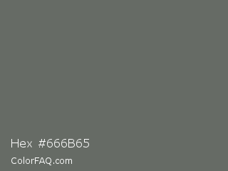Hex #666b65 Color is a normal green color and the nearest color is Granite Gray #676767. Hex code #666b65 and RGB value is rgb(102,107,101). In RGB color space, this color is composed of 40% red, 42% green, 40% blue, In CMYK color space, this color is composed of 5% cyan, 0% magenta, 6% yellow , 58% black , In HSL color space, this color has a hue angle of 110° , 3% saturation and 41% lightness.