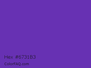 Hex #6731b3 Color is a normal violet color and the nearest color is Grape #6f2da8. Hex code #6731b3 and RGB value is rgb(103,49,179). In RGB color space, this color is composed of 40% red, 19% green, 70% blue, In CMYK color space, this color is composed of 42% cyan, 73% magenta, 0% yellow , 30% black , In HSL color space, this color has a hue angle of 265° , 57% saturation and 45% lightness.